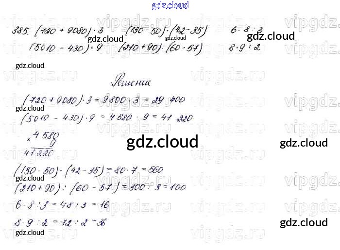 Ответ на задание 385 Учебник Математика за 4 (четвертый) класс Моро, Бантова, Бельтюкова, Волкова, Степанова Школа России 2015 Часть 1, 2