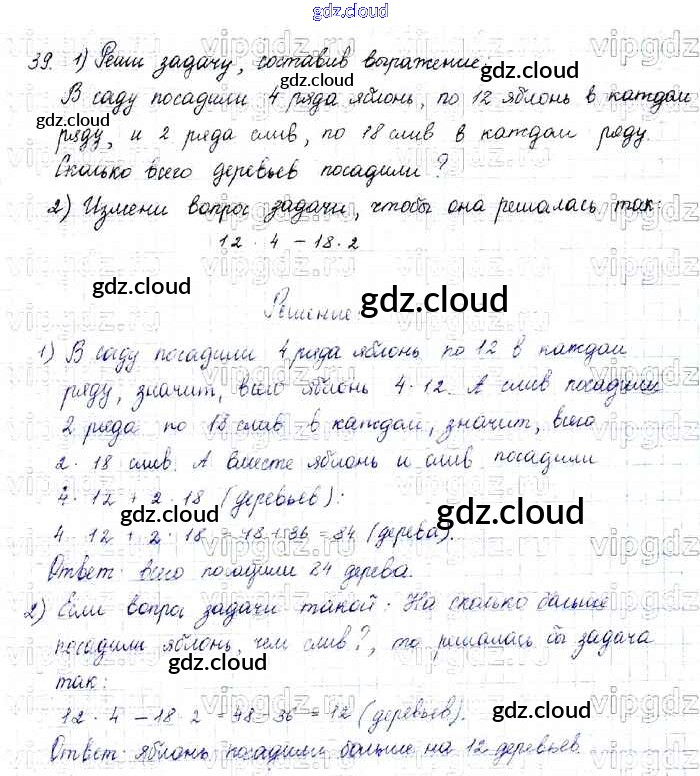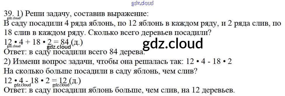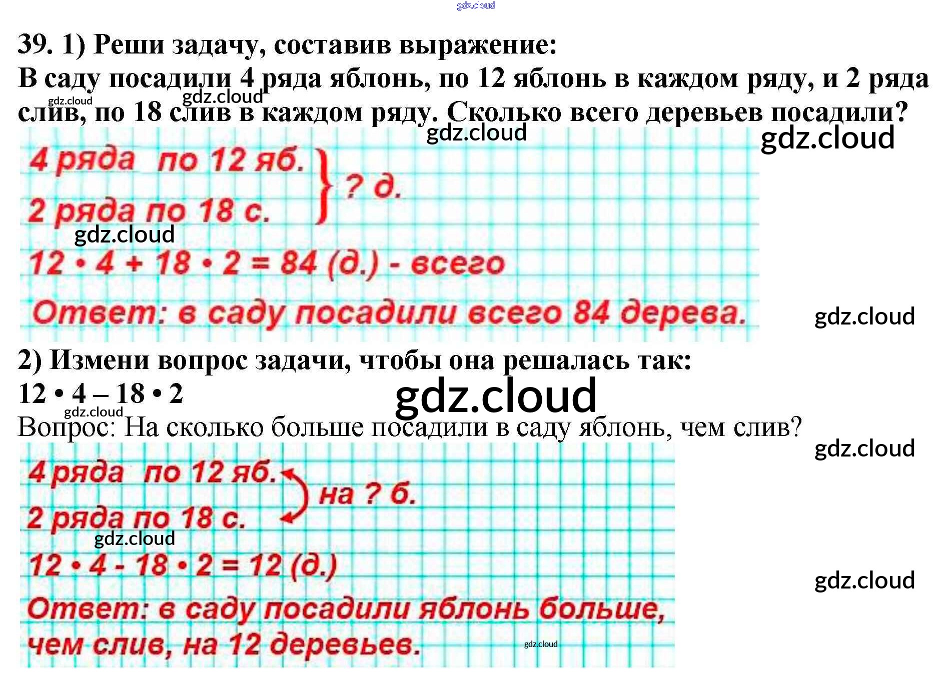 Ответ на задание 39 Учебник Математика за 4 (четвертый) класс Моро, Бантова, Бельтюкова, Волкова, Степанова Школа России 2015 Часть 1, 2