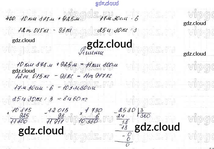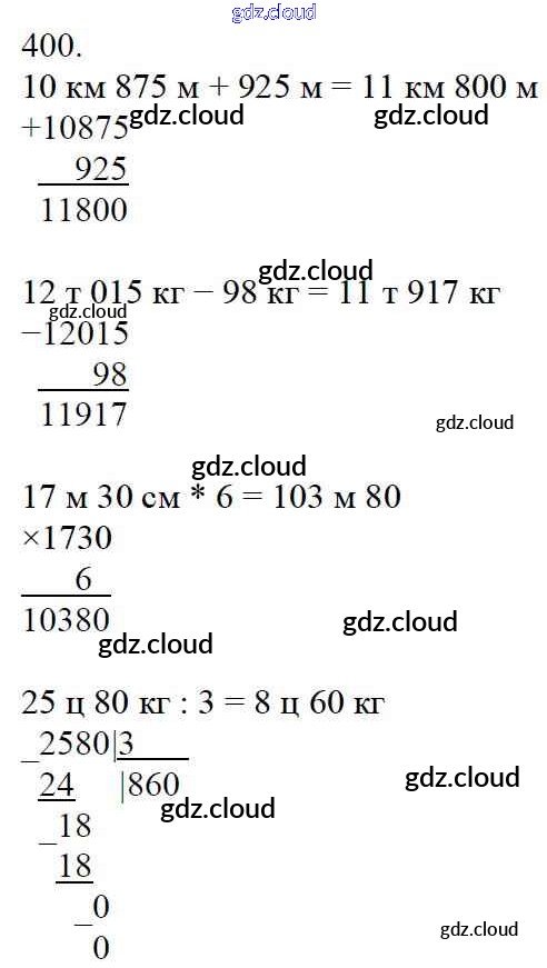 Ответ на задание 400 Учебник Математика за 4 (четвертый) класс Моро, Бантова, Бельтюкова, Волкова, Степанова Школа России 2015 Часть 1, 2