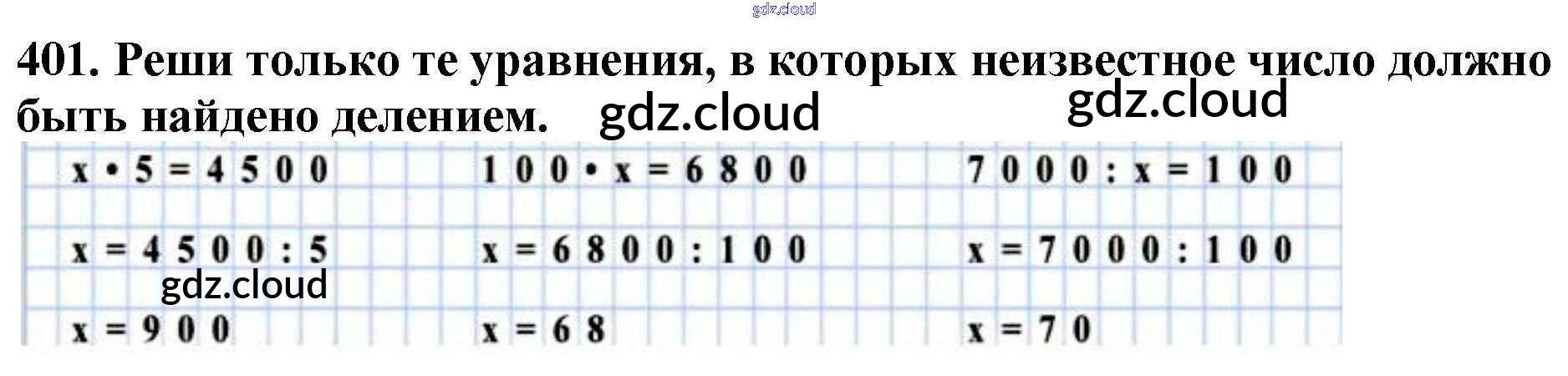 Ответ на задание 401 Учебник Математика за 4 (четвертый) класс Моро, Бантова, Бельтюкова, Волкова, Степанова Школа России 2015 Часть 1, 2