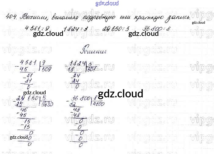 Ответ на задание 404 Учебник Математика за 4 (четвертый) класс Моро, Бантова, Бельтюкова, Волкова, Степанова Школа России 2015 Часть 1, 2