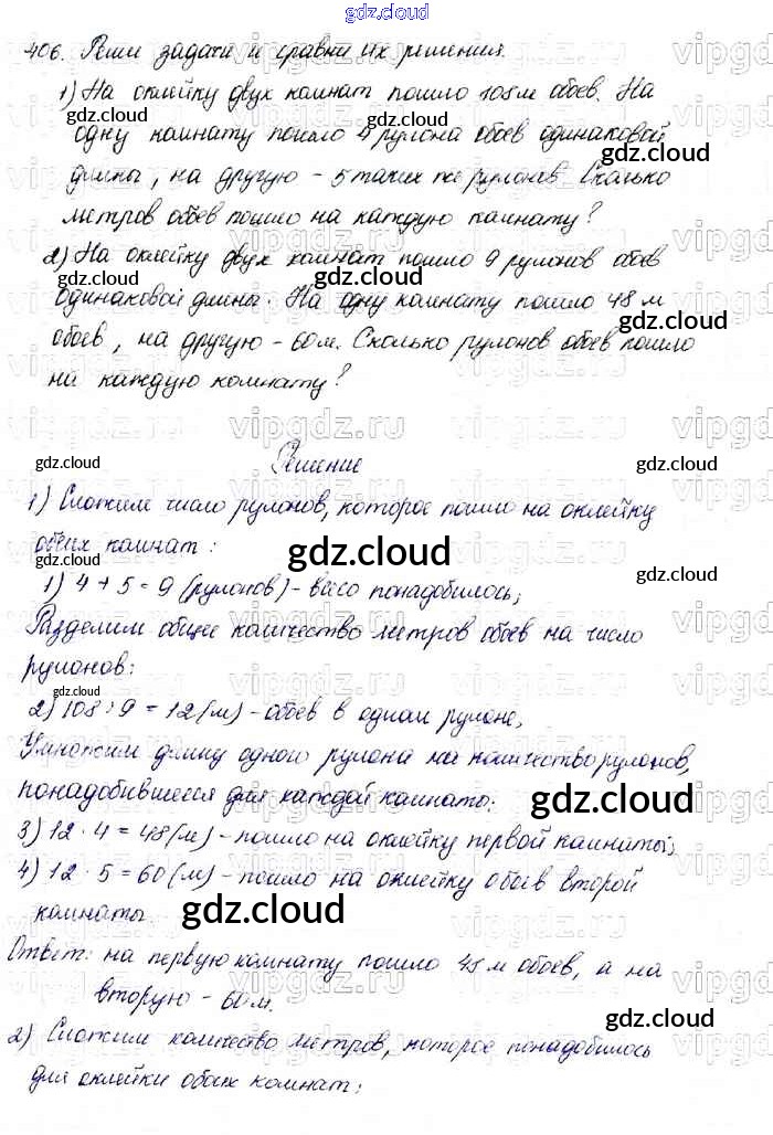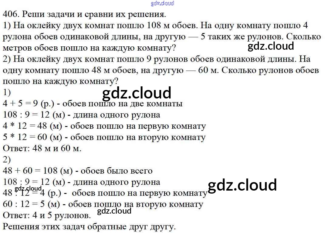 Ответ на задание 406 Учебник Математика за 4 (четвертый) класс Моро, Бантова, Бельтюкова, Волкова, Степанова Школа России 2015 Часть 1, 2
