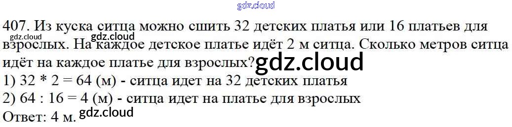 Ответ на задание 407 Учебник Математика за 4 (четвертый) класс Моро, Бантова, Бельтюкова, Волкова, Степанова Школа России 2015 Часть 1, 2