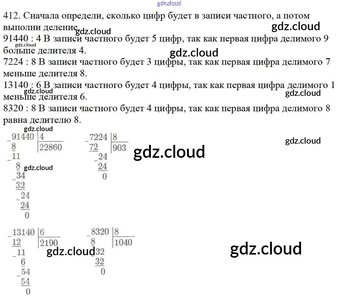 Ответ на задание 412 Учебник Математика за 4 (четвертый) класс Моро, Бантова, Бельтюкова, Волкова, Степанова Школа России 2015 Часть 1, 2