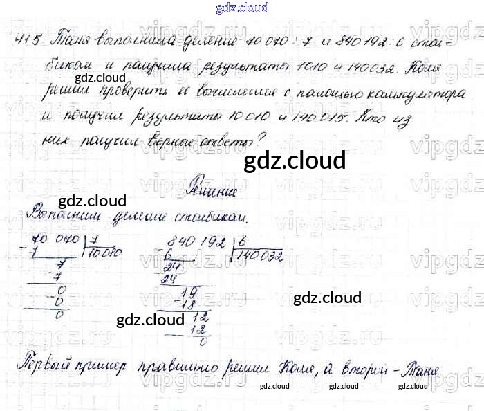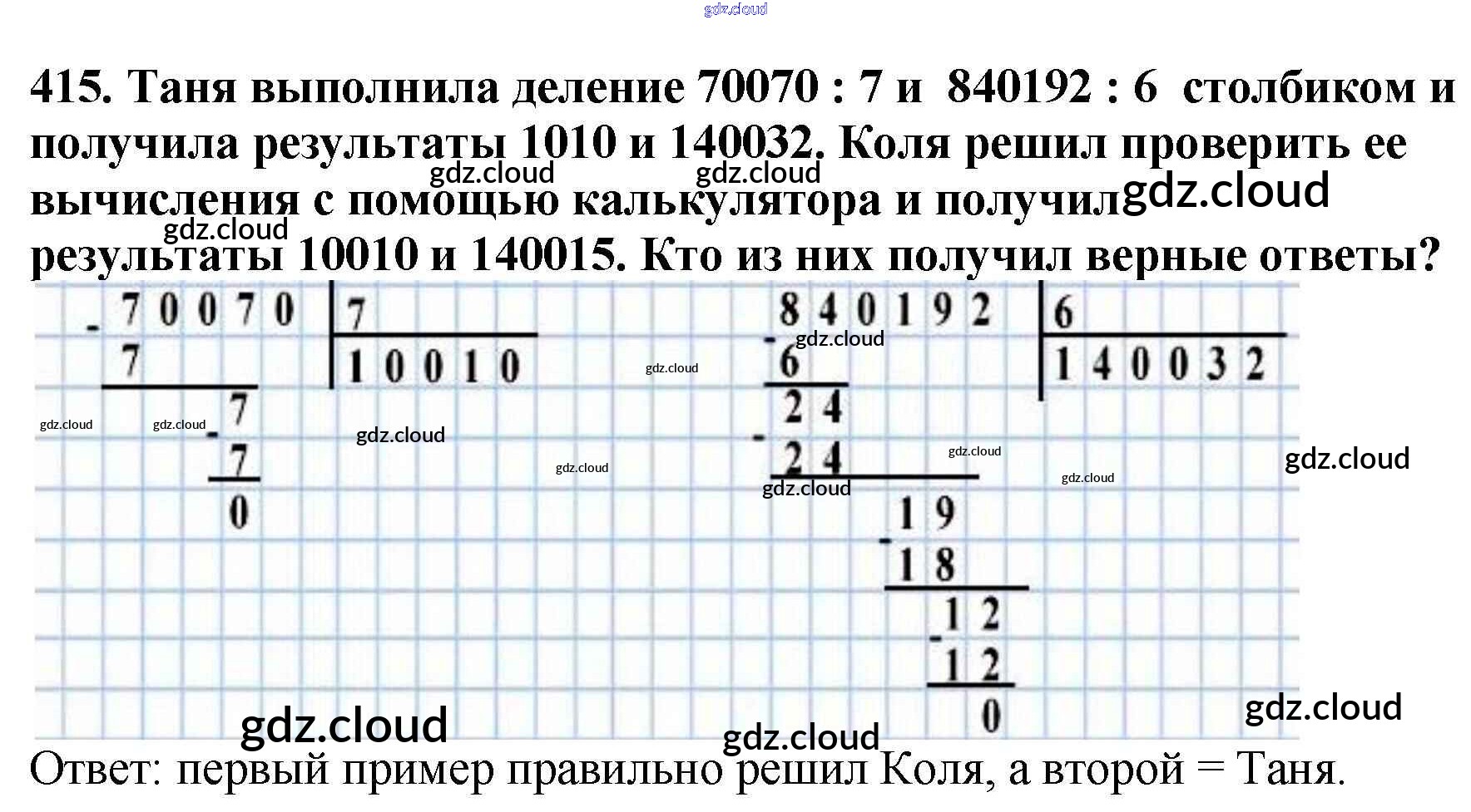 Ответ на задание 415 Учебник Математика за 4 (четвертый) класс Моро, Бантова, Бельтюкова, Волкова, Степанова Школа России 2015 Часть 1, 2