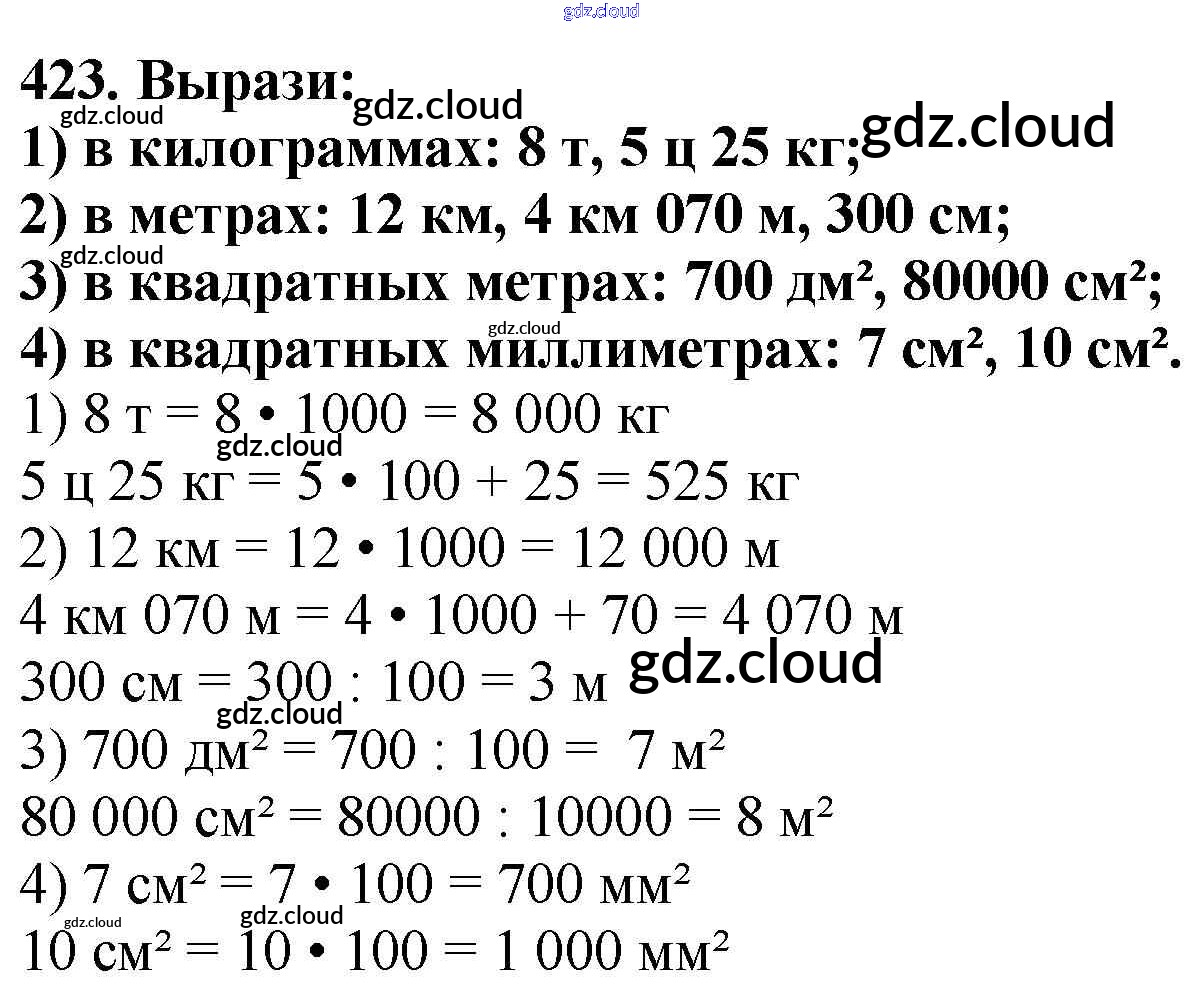 Ответ на задание 423 Учебник Математика за 4 (четвертый) класс Моро, Бантова, Бельтюкова, Волкова, Степанова Школа России 2015 Часть 1, 2