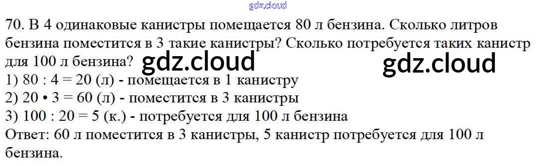 Ответ на задание 70 Учебник Математика за 4 (четвертый) класс Моро, Бантова, Бельтюкова, Волкова, Степанова Школа России 2015 Часть 1, 2