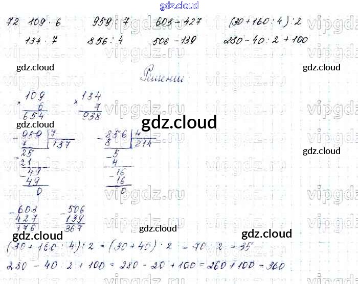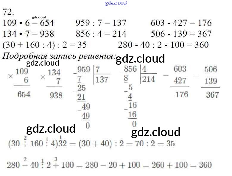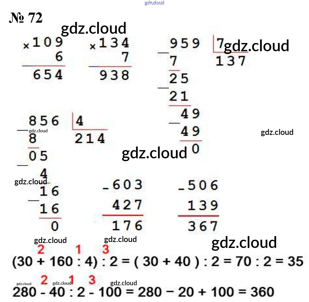 Ответ на задание 72 Учебник Математика за 4 (четвертый) класс Моро, Бантова, Бельтюкова, Волкова, Степанова Школа России 2015 Часть 1, 2