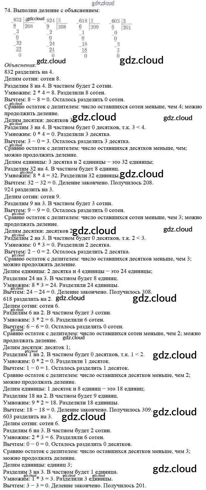 Ответ на задание 74 Учебник Математика за 4 (четвертый) класс Моро, Бантова, Бельтюкова, Волкова, Степанова Школа России 2015 Часть 1, 2