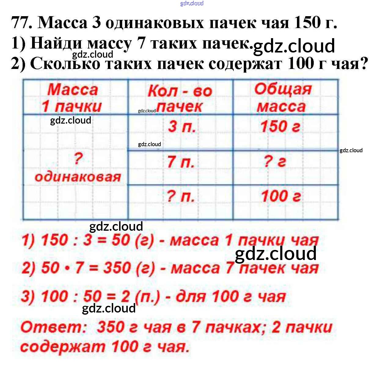 Ответ на задание 77 Учебник Математика за 4 (четвертый) класс Моро, Бантова, Бельтюкова, Волкова, Степанова Школа России 2015 Часть 1, 2