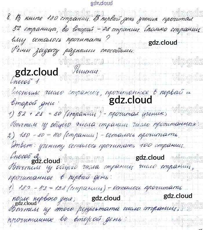 Ответ на задание 8 Учебник Математика за 4 (четвертый) класс Моро, Бантова, Бельтюкова, Волкова, Степанова Школа России 2015 Часть 1, 2