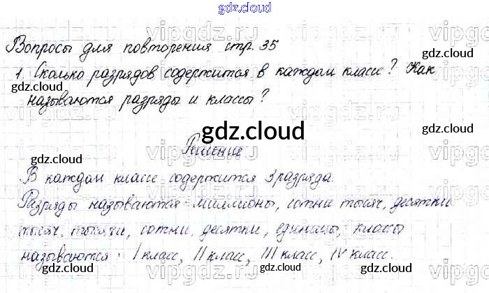 Страница 35 Вопросы для повторения по Математике 4 класс Учебник Моро Школа России Часть 1, 2 Просвещение