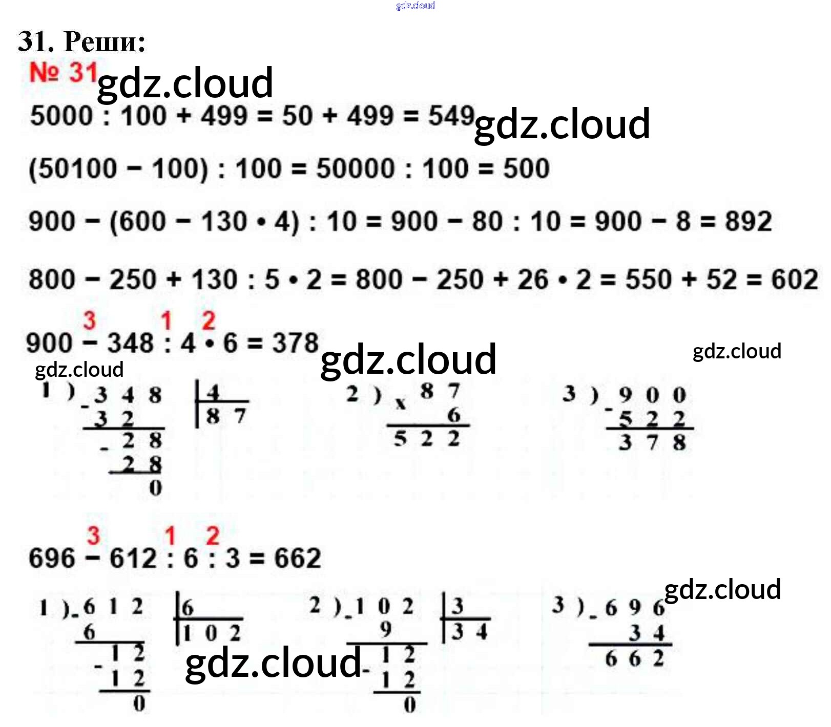 Ответ на задание 31 Учебник Математика за 4 (четвертый) класс Моро, Бантова, Бельтюкова, Волкова, Степанова Школа России 2015 Часть 1, 2