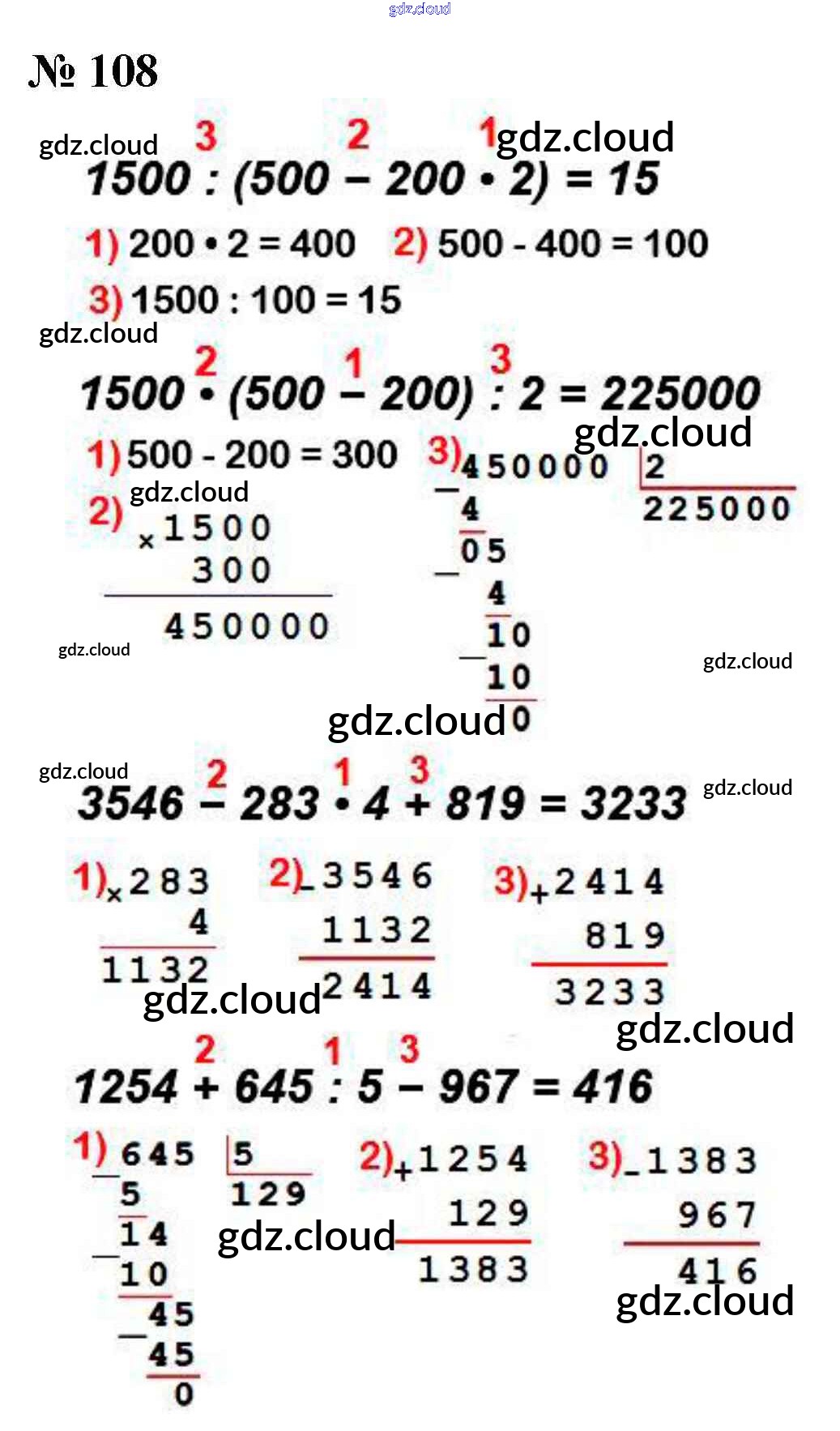 Ответ на задание 108 Учебник Математика за 4 (четвертый) класс Моро, Бантова, Бельтюкова, Волкова, Степанова Школа России 2015 Часть 1, 2