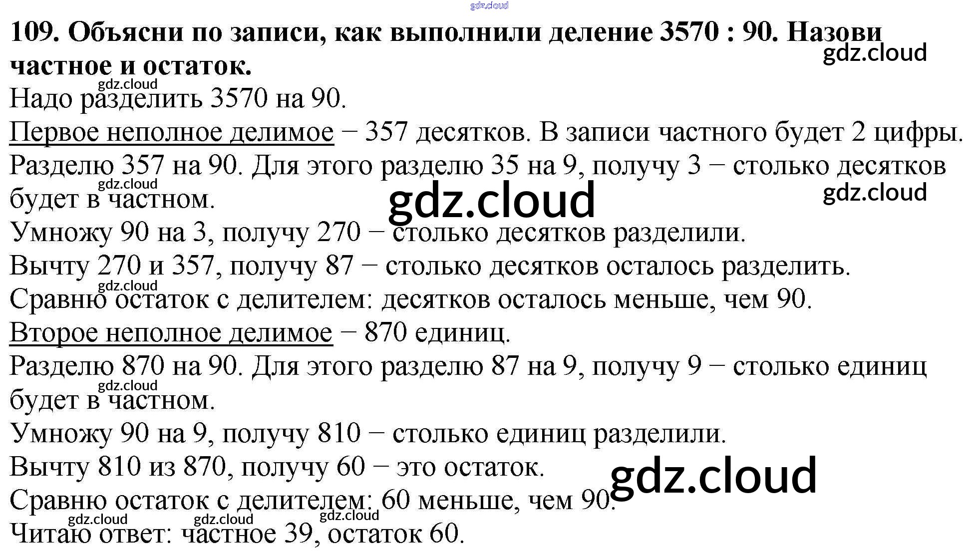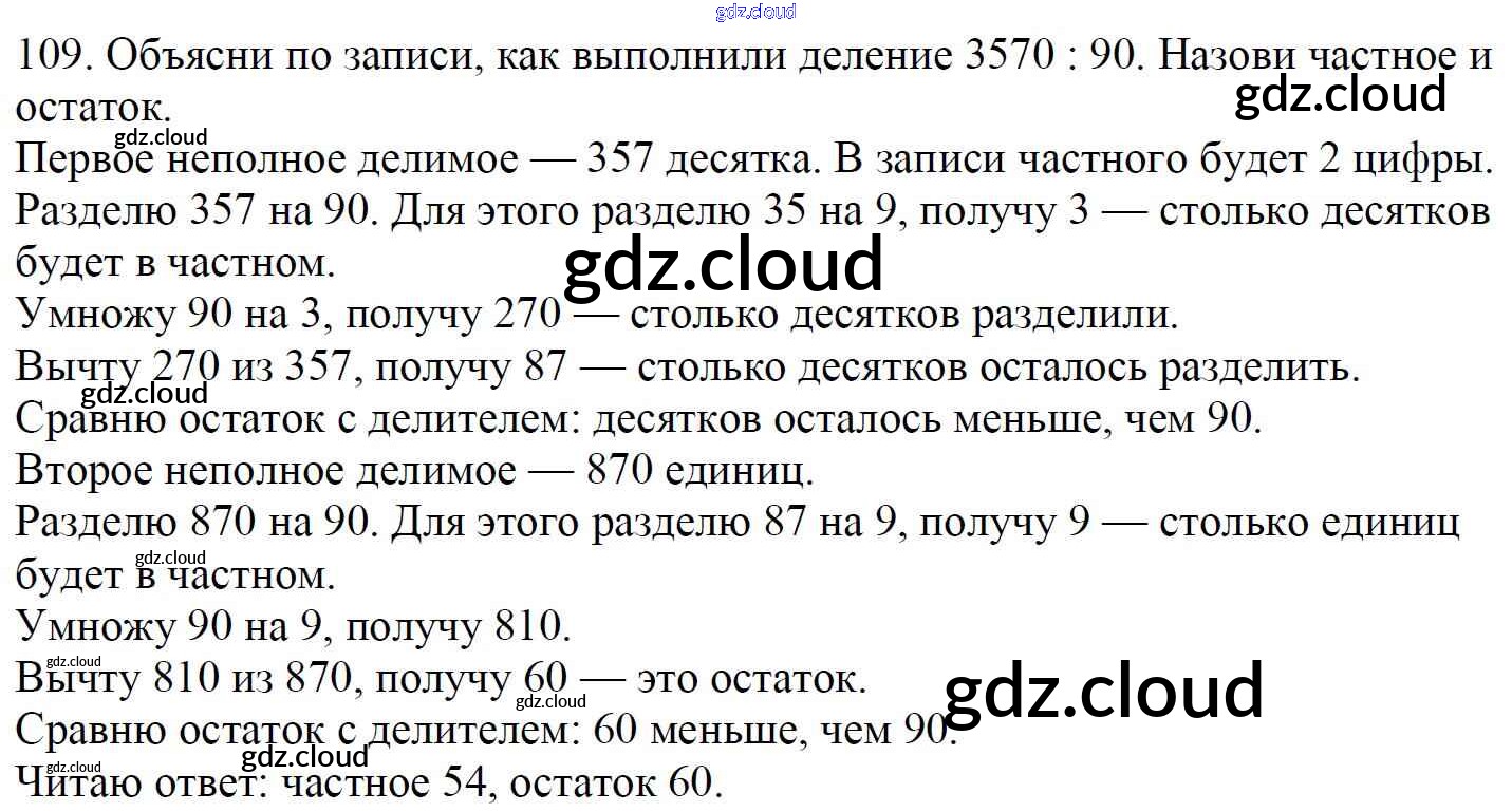 Ответ на задание 109 Учебник Математика за 4 (четвертый) класс Моро, Бантова, Бельтюкова, Волкова, Степанова Школа России 2015 Часть 1, 2