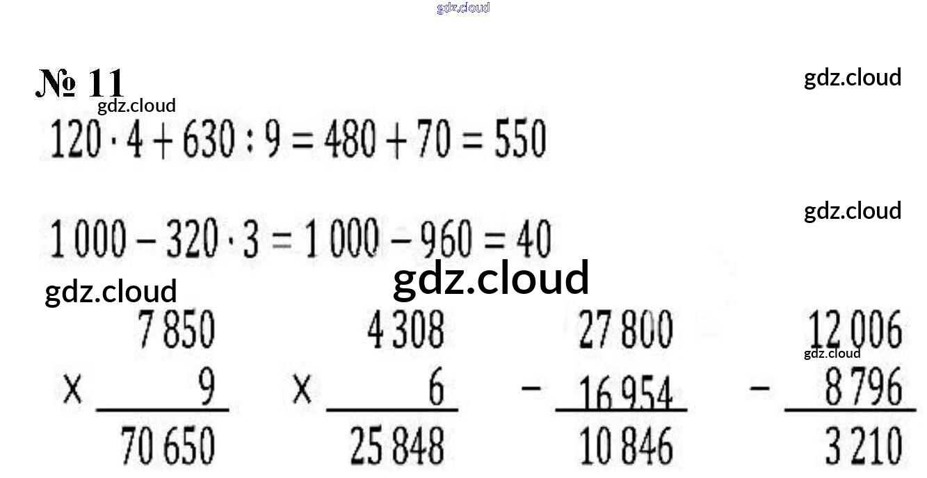 Ответ на задание 11 Учебник Математика за 4 (четвертый) класс Моро, Бантова, Бельтюкова, Волкова, Степанова Школа России 2015 Часть 1, 2