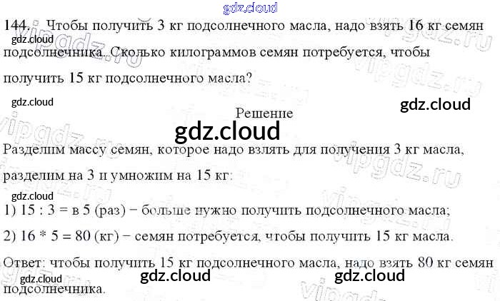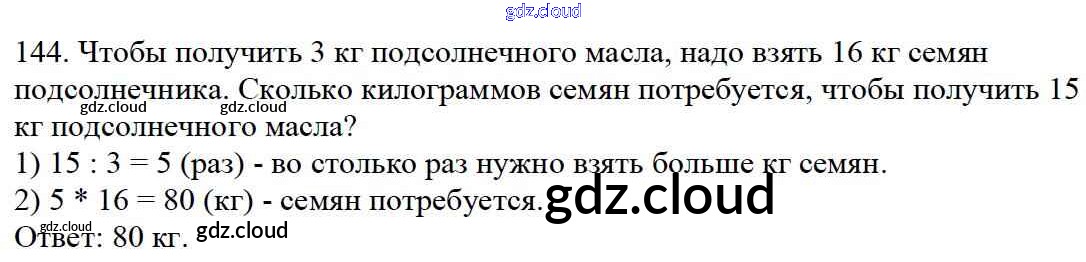 Ответ на задание 144 Учебник Математика за 4 (четвертый) класс Моро, Бантова, Бельтюкова, Волкова, Степанова Школа России 2015 Часть 1, 2