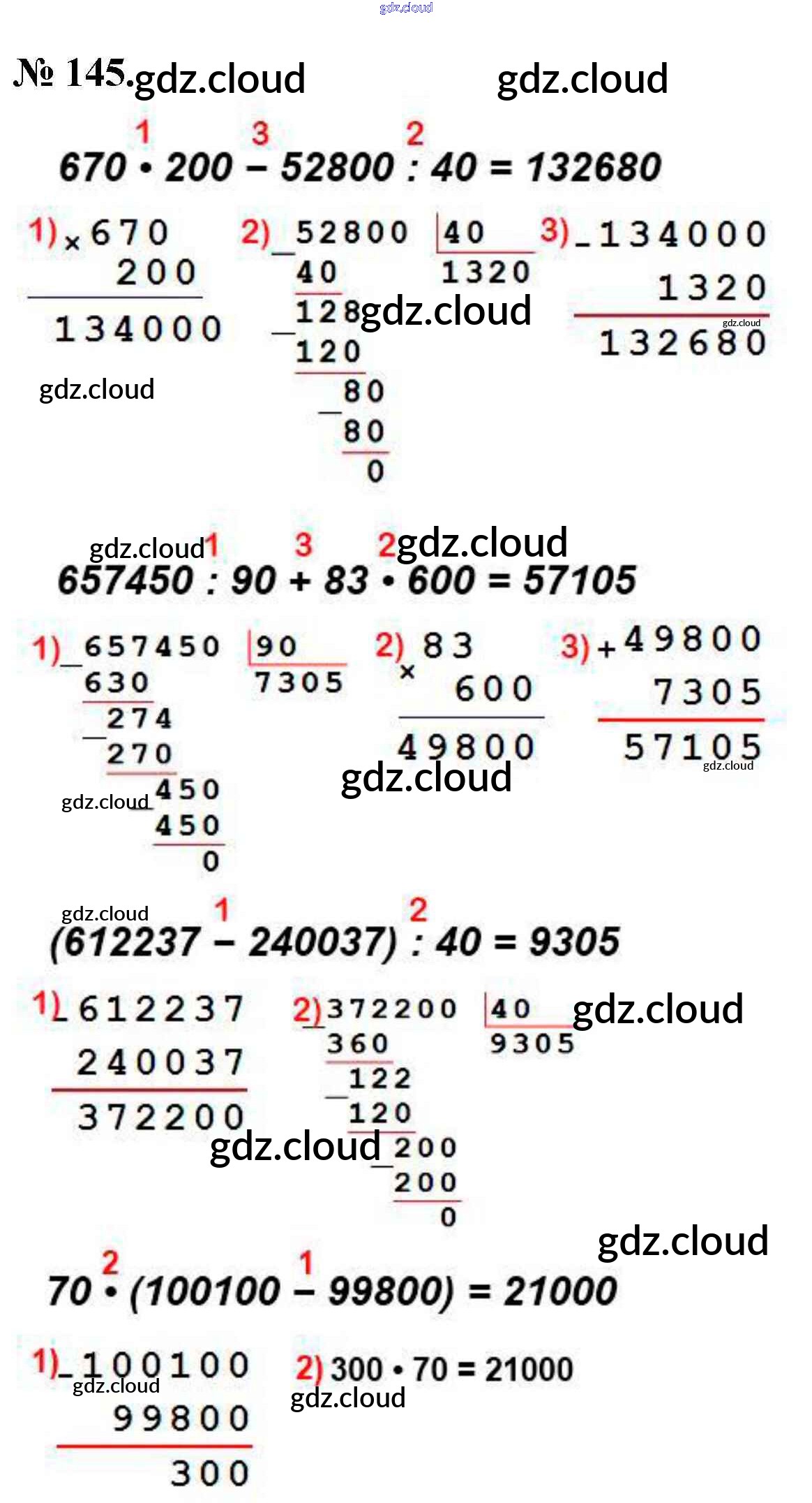 Ответ на задание 145 Учебник Математика за 4 (четвертый) класс Моро, Бантова, Бельтюкова, Волкова, Степанова Школа России 2015 Часть 1, 2