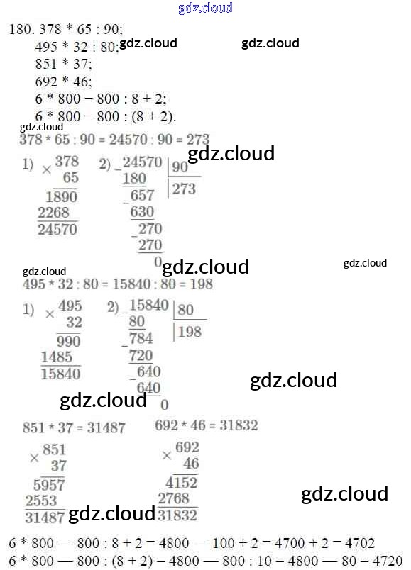 Ответ на задание 180 Учебник Математика за 4 (четвертый) класс Моро, Бантова, Бельтюкова, Волкова, Степанова Школа России 2015 Часть 1, 2