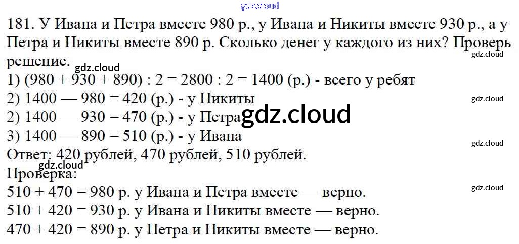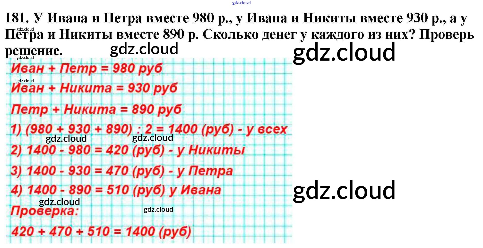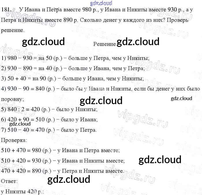 Ответ на задание 181 Учебник Математика за 4 (четвертый) класс Моро, Бантова, Бельтюкова, Волкова, Степанова Школа России 2015 Часть 1, 2