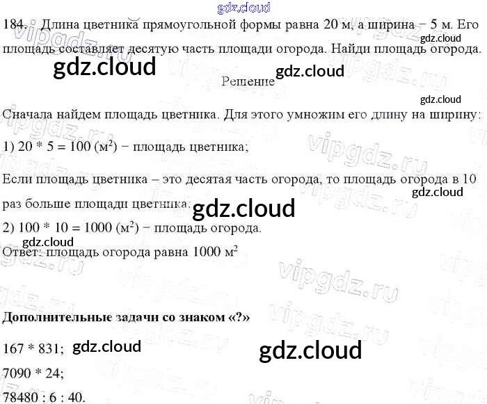 Ответ на задание 184 Учебник Математика за 4 (четвертый) класс Моро, Бантова, Бельтюкова, Волкова, Степанова Школа России 2015 Часть 1, 2