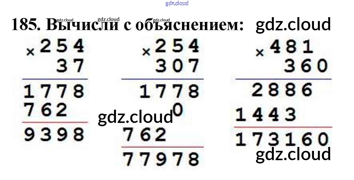 Ответ на задание 185 Учебник Математика за 4 (четвертый) класс Моро, Бантова, Бельтюкова, Волкова, Степанова Школа России 2015 Часть 1, 2