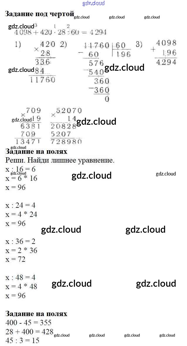 Задания внизу и на полях страницы Упражнения по Математике 4 класс Учебник Моро Школа России Часть 1, 2 Просвещение