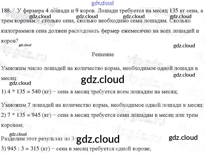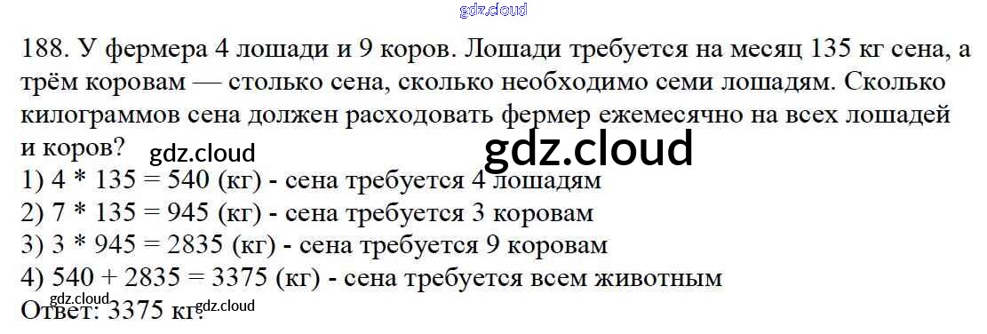 Ответ на задание 188 Учебник Математика за 4 (четвертый) класс Моро, Бантова, Бельтюкова, Волкова, Степанова Школа России 2015 Часть 1, 2