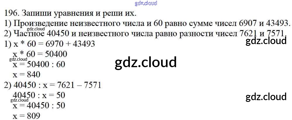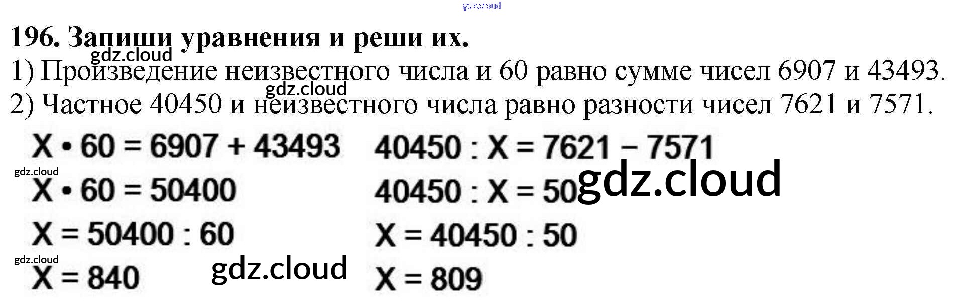 Ответ на задание 196 Учебник Математика за 4 (четвертый) класс Моро, Бантова, Бельтюкова, Волкова, Степанова Школа России 2015 Часть 1, 2