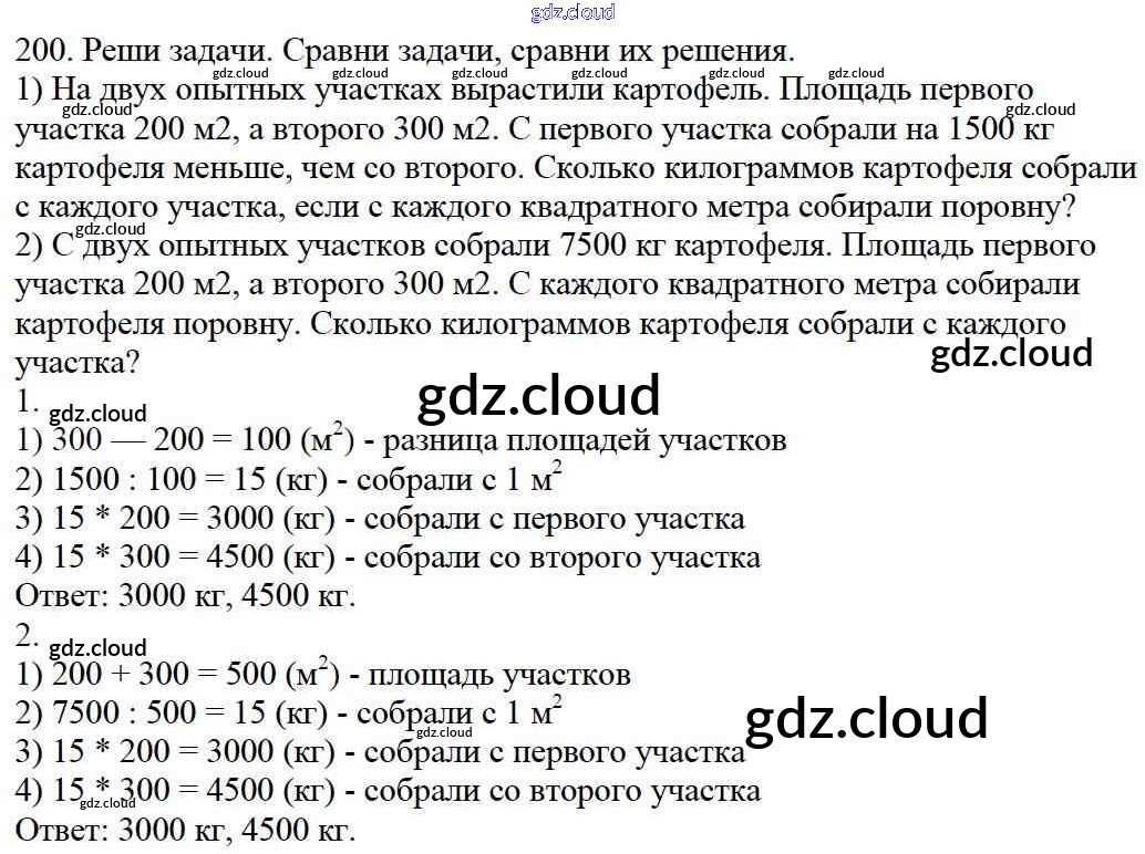 Ответ на задание 200 Учебник Математика  за 4 (четвертый) класс Моро, Бантова, Бельтюкова, Волкова, Степанова Школа России  2015 Часть 1, 2