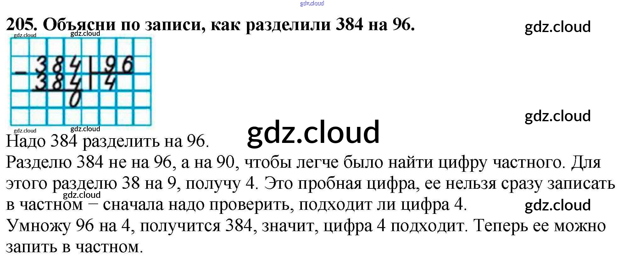 Ответ на задание 205 Учебник Математика за 4 (четвертый) класс Моро, Бантова, Бельтюкова, Волкова, Степанова Школа России 2015 Часть 1, 2