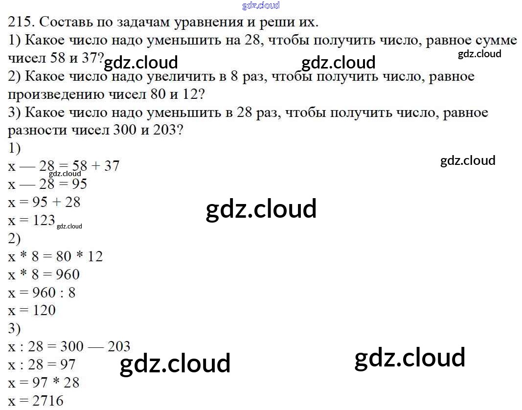 Ответ на задание 215 Учебник Математика за 4 (четвертый) класс Моро, Бантова, Бельтюкова, Волкова, Степанова Школа России 2015 Часть 1, 2