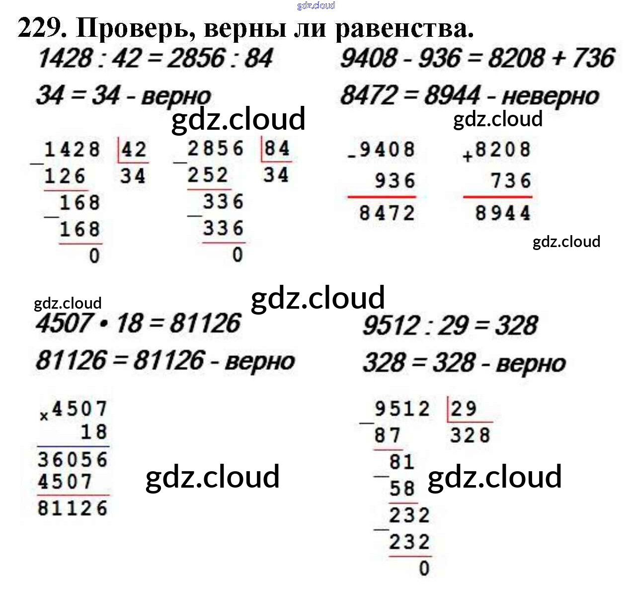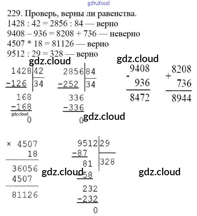 Ответ на задание 229 Учебник Математика за 4 (четвертый) класс Моро, Бантова, Бельтюкова, Волкова, Степанова Школа России 2015 Часть 1, 2