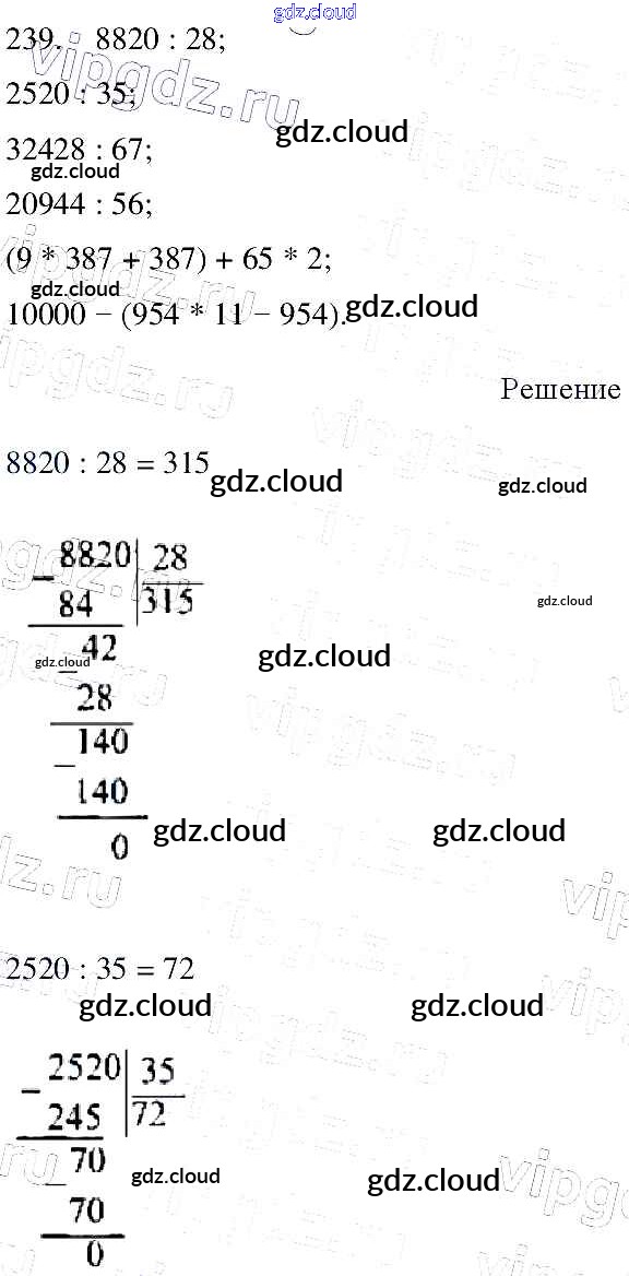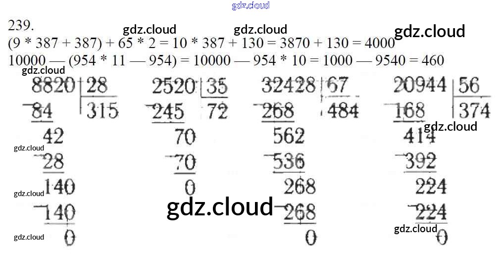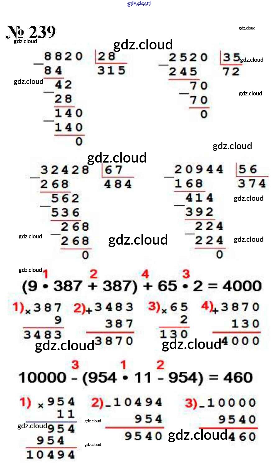 Ответ на задание 239 Учебник Математика за 4 (четвертый) класс Моро, Бантова, Бельтюкова, Волкова, Степанова Школа России 2015 Часть 1, 2