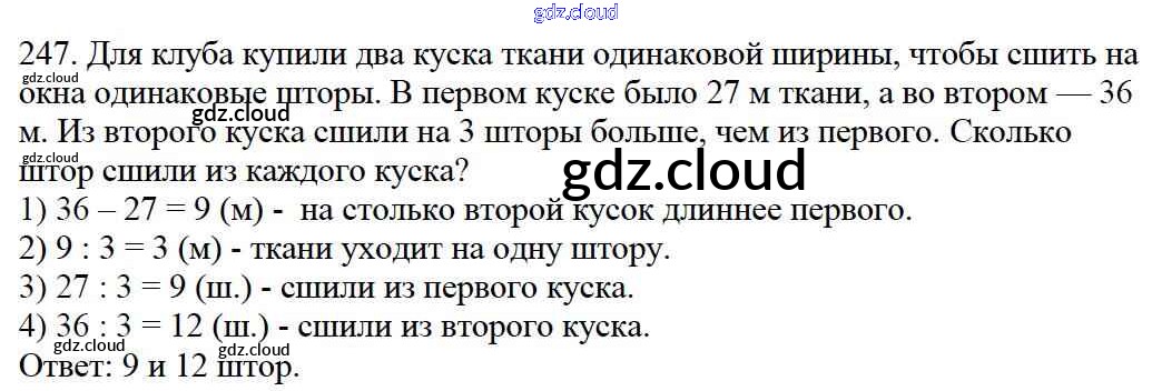 Ответ на задание 247 Учебник Математика за 4 (четвертый) класс Моро, Бантова, Бельтюкова, Волкова, Степанова Школа России 2015 Часть 1, 2
