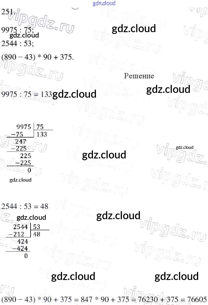Ответ на задание 251 Учебник Математика за 4 (четвертый) класс Моро, Бантова, Бельтюкова, Волкова, Степанова Школа России 2015 Часть 1, 2