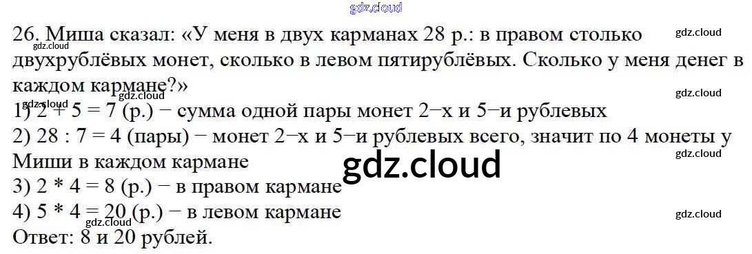Ответ на задание 26 Учебник Математика за 4 (четвертый) класс Моро, Бантова, Бельтюкова, Волкова, Степанова Школа России 2015 Часть 1, 2