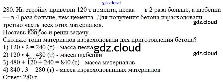 Ответ на задание 280 Учебник Математика за 4 (четвертый) класс Моро, Бантова, Бельтюкова, Волкова, Степанова Школа России 2015 Часть 1, 2