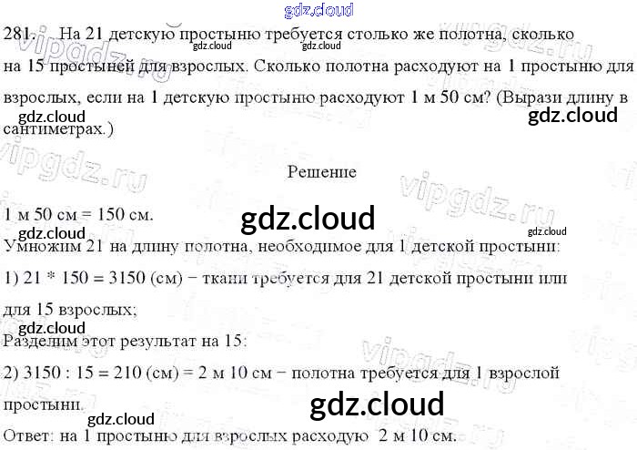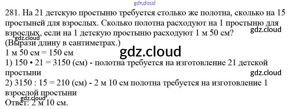 Ответ на задание 281 Учебник Математика за 4 (четвертый) класс Моро, Бантова, Бельтюкова, Волкова, Степанова Школа России 2015 Часть 1, 2