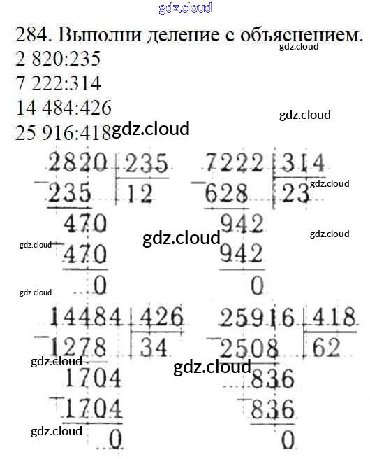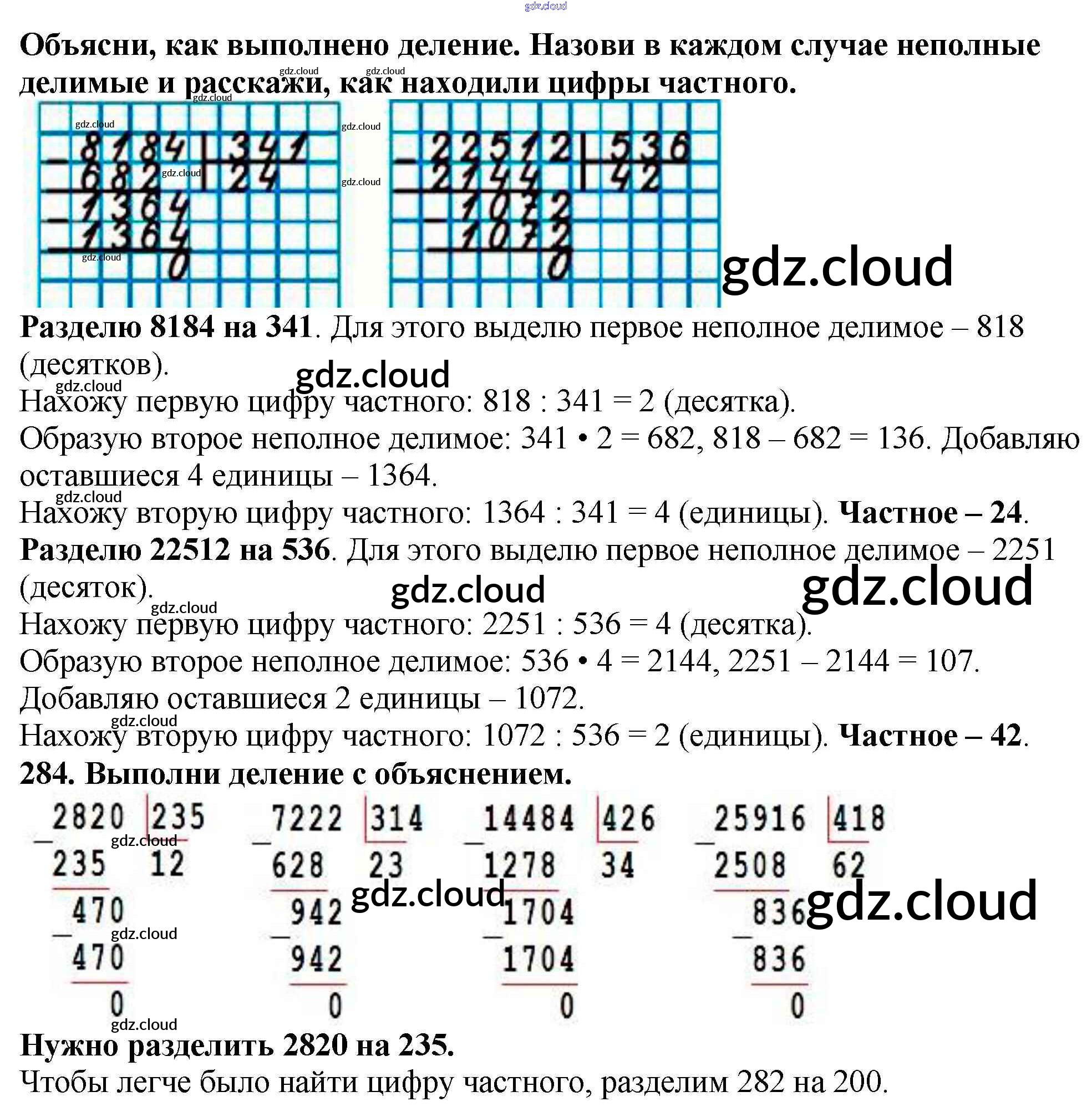 Ответ на задание 284 Учебник Математика за 4 (четвертый) класс Моро, Бантова, Бельтюкова, Волкова, Степанова Школа России 2015 Часть 1, 2