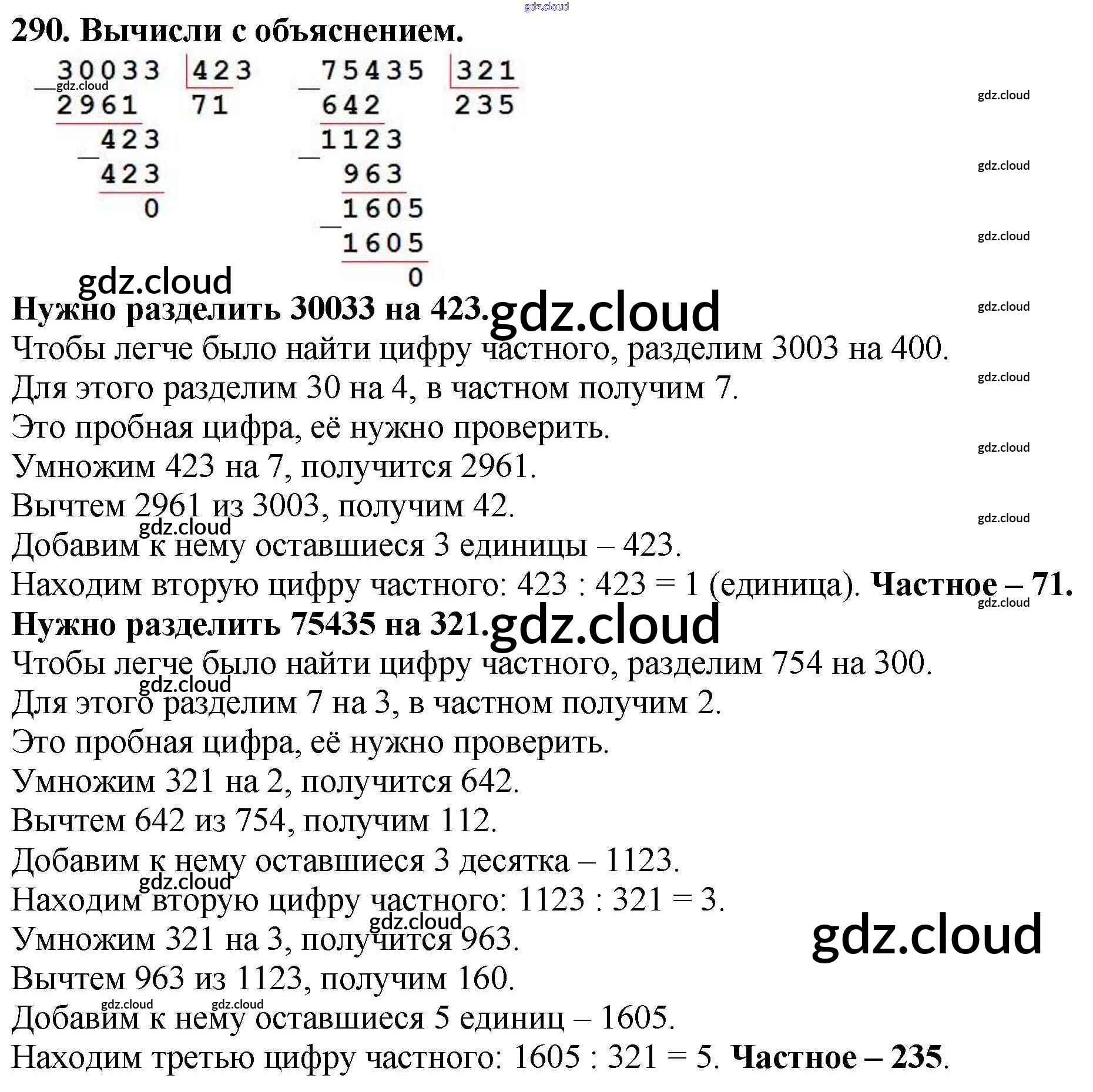 Ответ на задание 290 Учебник Математика за 4 (четвертый) класс Моро, Бантова, Бельтюкова, Волкова, Степанова Школа России 2015 Часть 1, 2