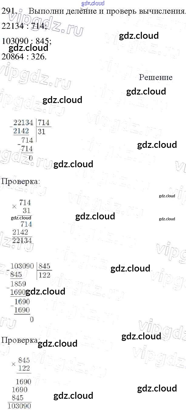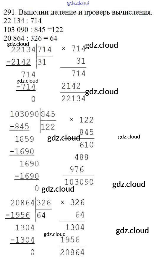 Ответ на задание 291 Учебник Математика за 4 (четвертый) класс Моро, Бантова, Бельтюкова, Волкова, Степанова Школа России 2015 Часть 1, 2