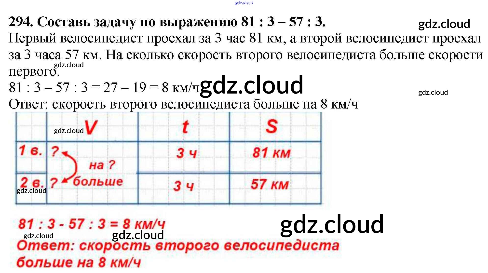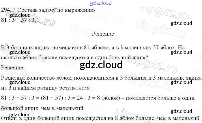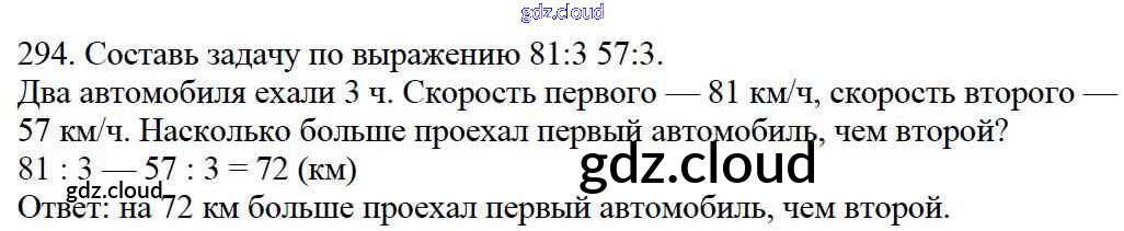 Ответ на задание 294 Учебник Математика за 4 (четвертый) класс Моро, Бантова, Бельтюкова, Волкова, Степанова Школа России 2015 Часть 1, 2