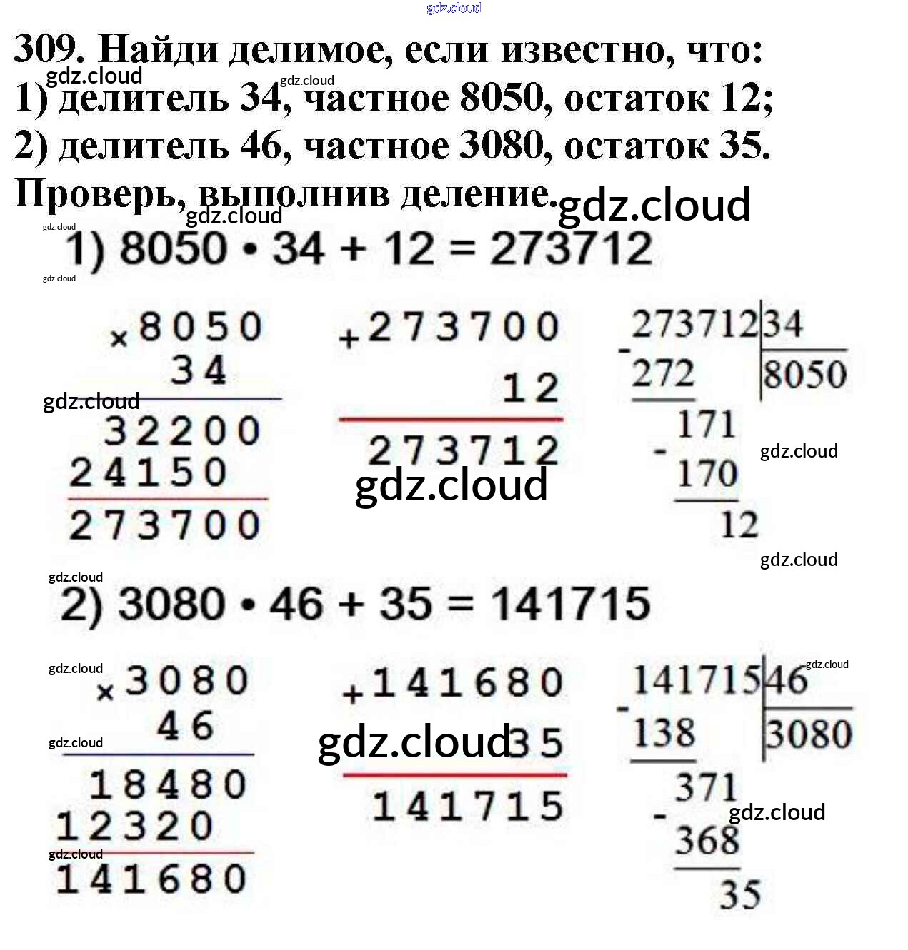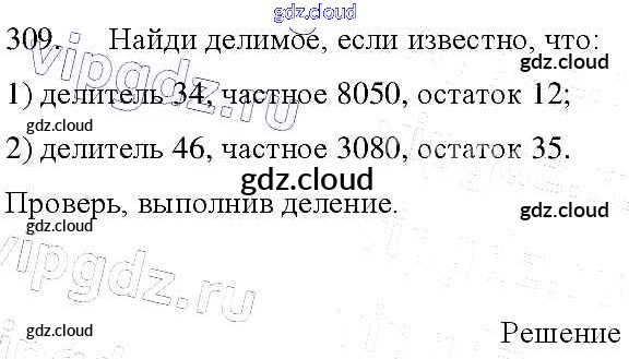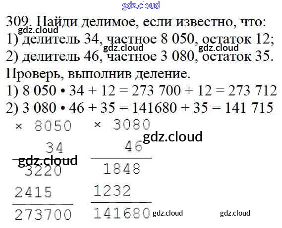 Ответ на задание 309 Учебник Математика  за 4 (четвертый) класс Моро, Бантова, Бельтюкова, Волкова, Степанова Школа России  2015 Часть 1, 2