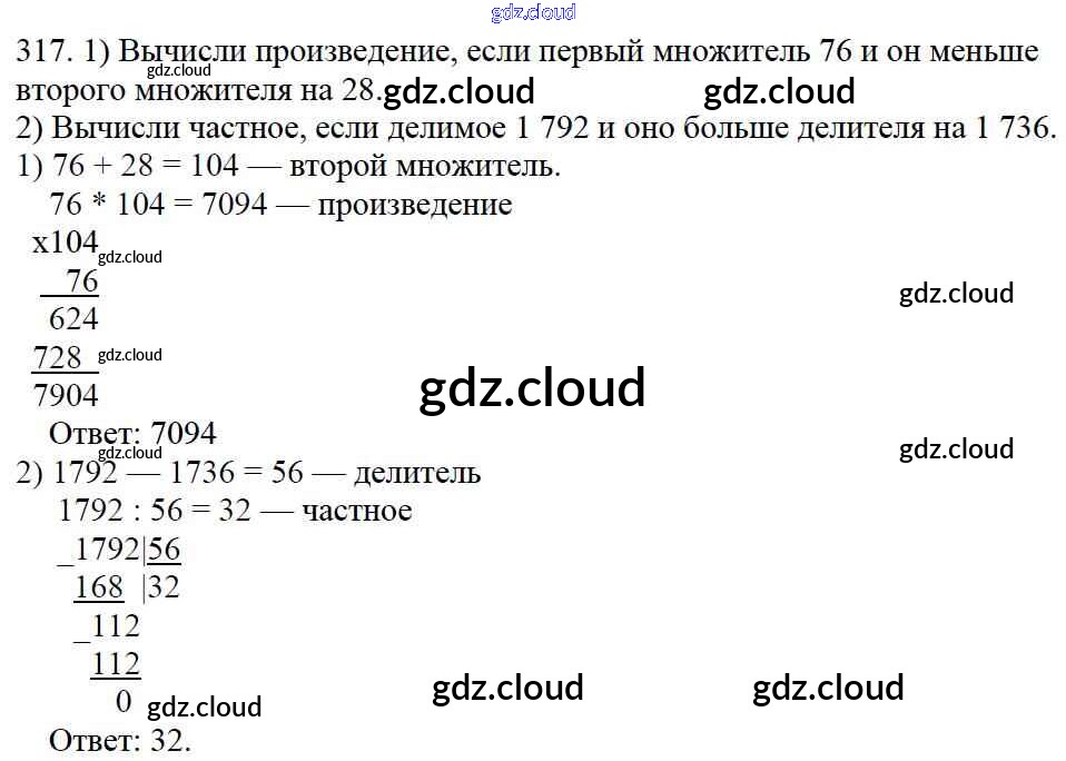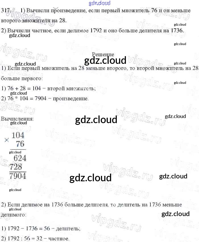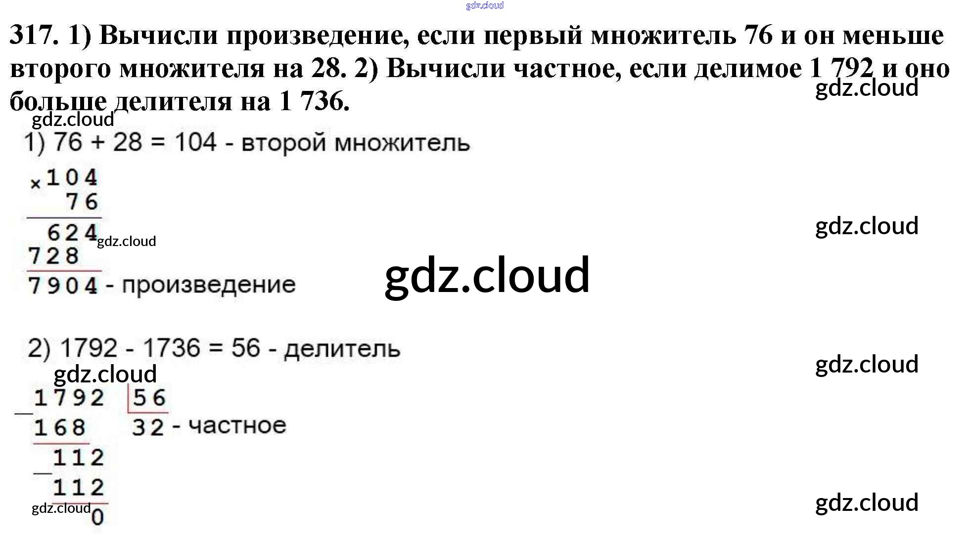 Ответ на задание 317 Учебник Математика за 4 (четвертый) класс Моро, Бантова, Бельтюкова, Волкова, Степанова Школа России 2015 Часть 1, 2
