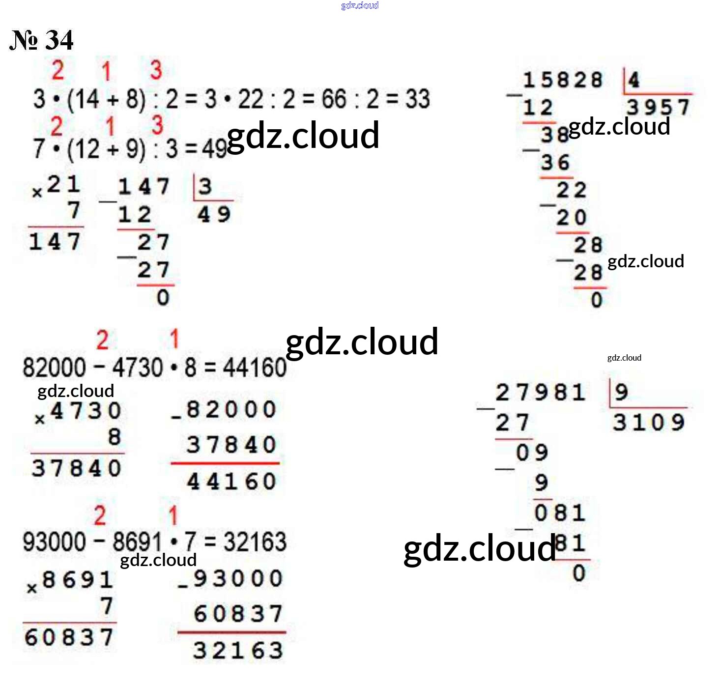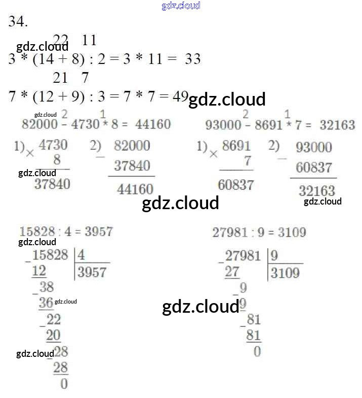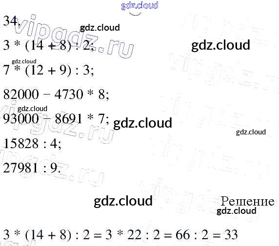 Ответ на задание 34 Учебник Математика за 4 (четвертый) класс Моро, Бантова, Бельтюкова, Волкова, Степанова Школа России 2015 Часть 1, 2