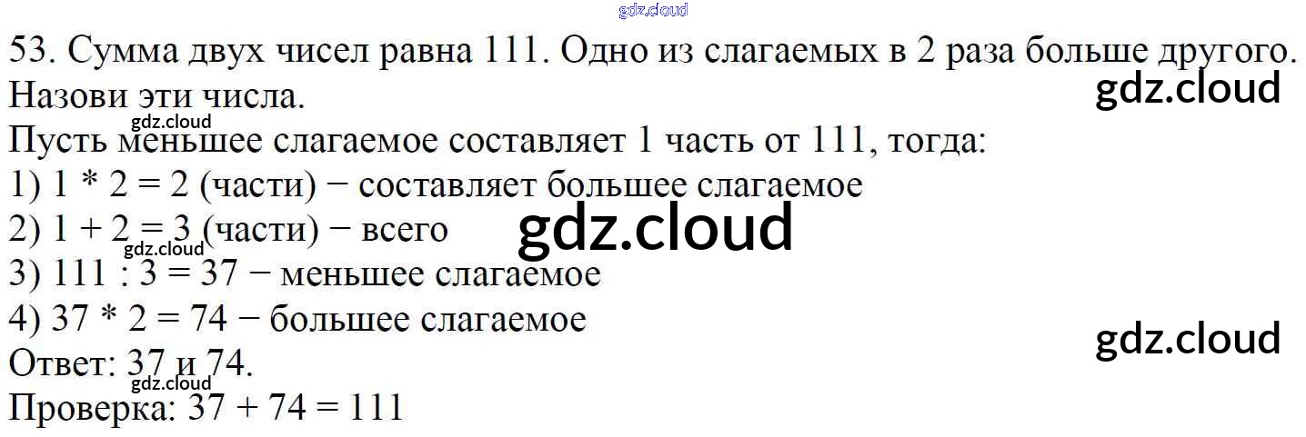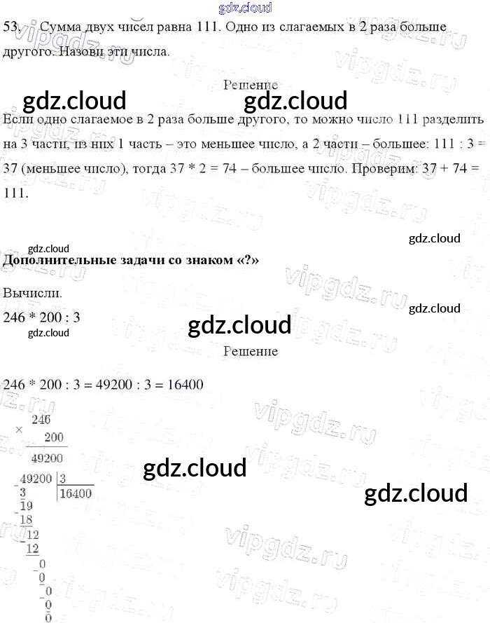 Ответ на задание 53 Учебник Математика за 4 (четвертый) класс Моро, Бантова, Бельтюкова, Волкова, Степанова Школа России 2015 Часть 1, 2