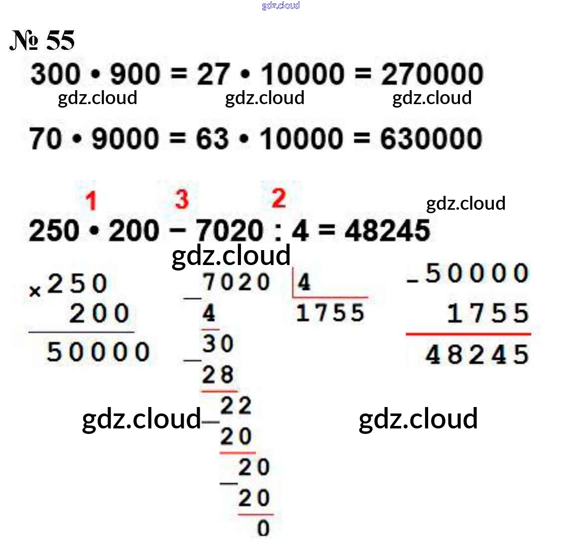 Ответ на задание 55 Учебник Математика за 4 (четвертый) класс Моро, Бантова, Бельтюкова, Волкова, Степанова Школа России 2015 Часть 1, 2