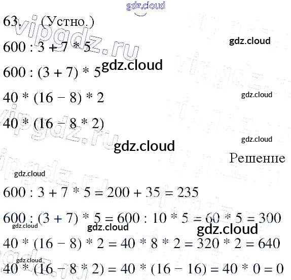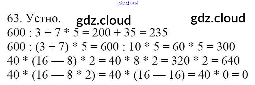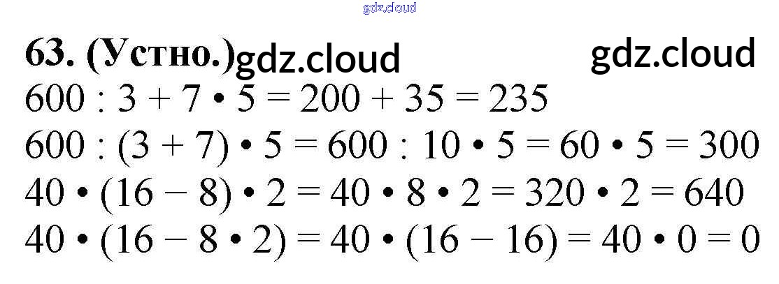 Ответ на задание 63 Учебник Математика  за 4 (четвертый) класс Моро, Бантова, Бельтюкова, Волкова, Степанова Школа России  2015 Часть 1, 2
