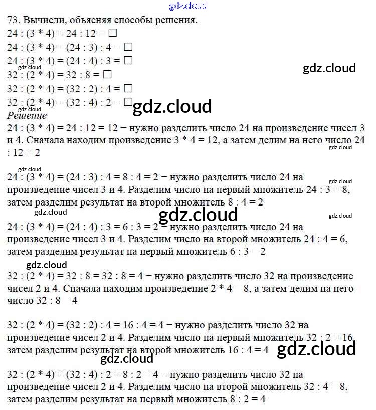 Ответ на задание 73 Учебник Математика за 4 (четвертый) класс Моро, Бантова, Бельтюкова, Волкова, Степанова Школа России 2015 Часть 1, 2